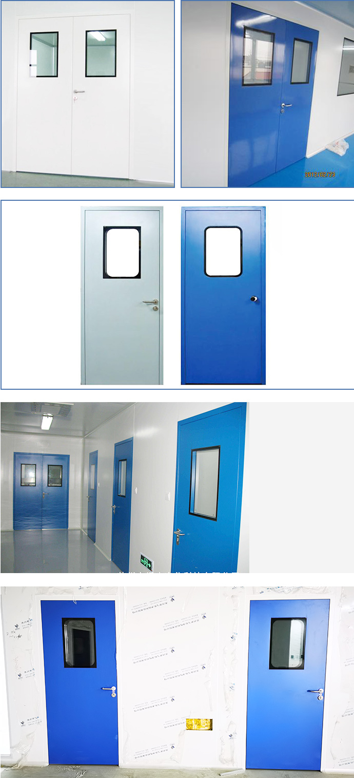 潔凈室鋼質門適用于凈化車間,電子廠1級-30萬級,微生物實驗室,動力實驗室,動物實驗室,光學實驗室,醫院病房,手術室,藥廠,食品廠等有潔凈要求的場合。 門體模具一體成型,無縫隙,耐腐蝕。結構為動力梁為鋁合金型材,傳動結構合理、可靠。壽命達100萬次以上。產品整體性能良好,具有外形美觀、平整、強度高、耐腐蝕不積灰、不發塵、易清潔等優點,且安裝方便、快捷。本實用新型的門框寬度可調,密封性好。
